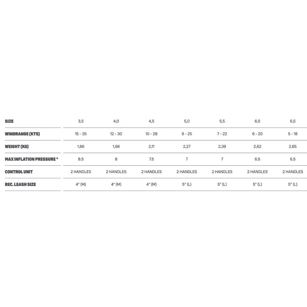 Pour fournir toujours plus de précision et de confort, elle est cette année équipée de poignées rigides larges pour une sensation unique proche de celle que l’on peut retrouver avec un wish. La forme permet d’obtenir un confort maximal de la préhension et le feeling direct qu’elles génèrent permettent d’avoir un pilotage à la précision exemplaire.