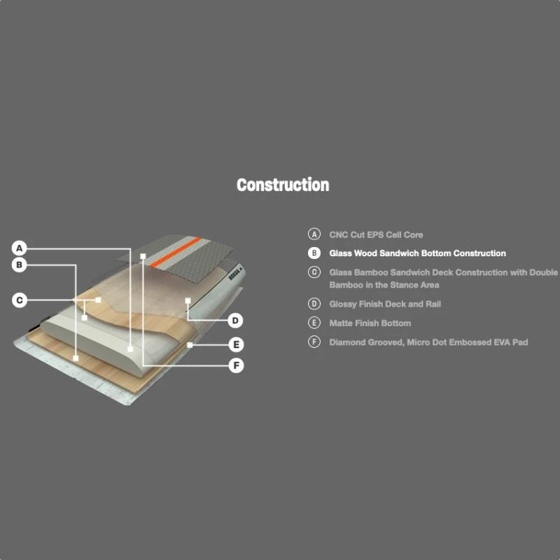 La Hokua GTW est dotĂ©e d’un coeur en mousse EPS, d’une couche de bois, de fibres de verre et d’un renfort additionnel sur le pont. Cette construction permet d’avoir une planche lĂ©gère, rĂ©active et rĂ©sistante en plus de son look vraiment sympa.
