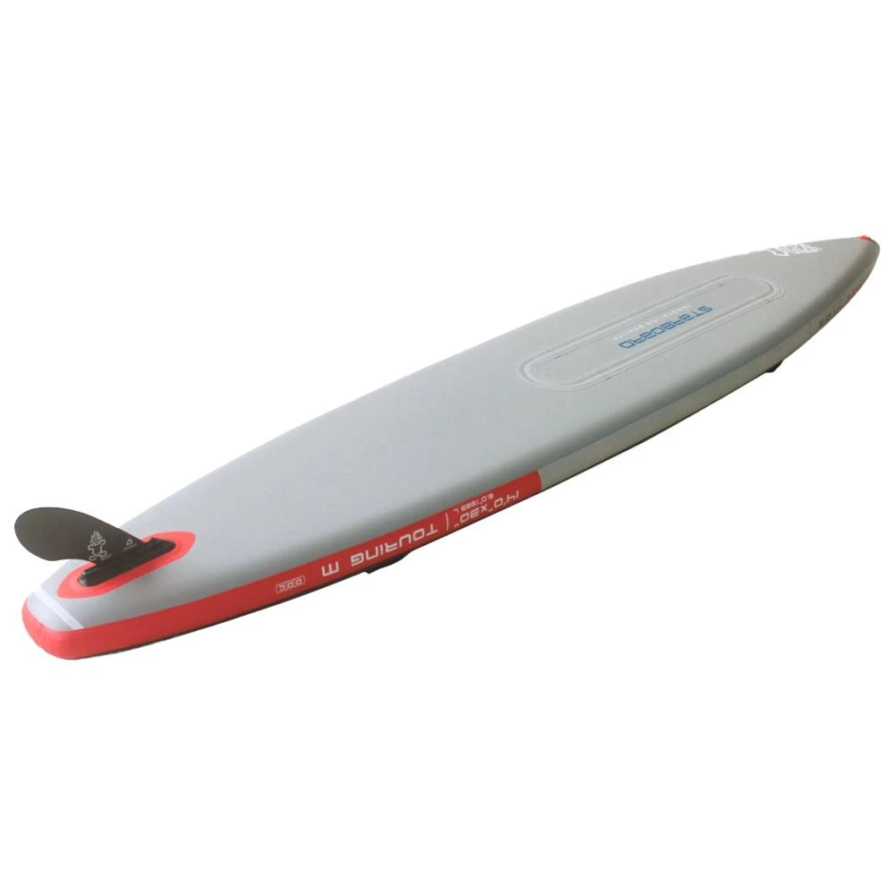 La Touring Deluxe SC de Starboard est une planche de SUP gonflable très stable grâce à son nose et tail larges, la rendant adaptée aux conditions difficiles de houle latérale et vents modérés notamment. La technologie de rails soudés améliore grandement la solidité, pour une planche très durable. La glisse est rapide grâce à l’outline avec section médiane étroite et arrière large. La planche est également stable et facile à faire tourner. Les sangles élastiques permettent de transporter votre matériel et un insert FCS est présent pour fixer des accessoires tels que support GoPro, téléphone ou GPS. Le sac de transport fourni est équipé de roues et de sangles ergonomiques. La Touring Deluxe SC est aussi vendue avec une dérive Dol-fin 22, une pompe Tiki, un leash, une sangle de transport et un kit de réparation.