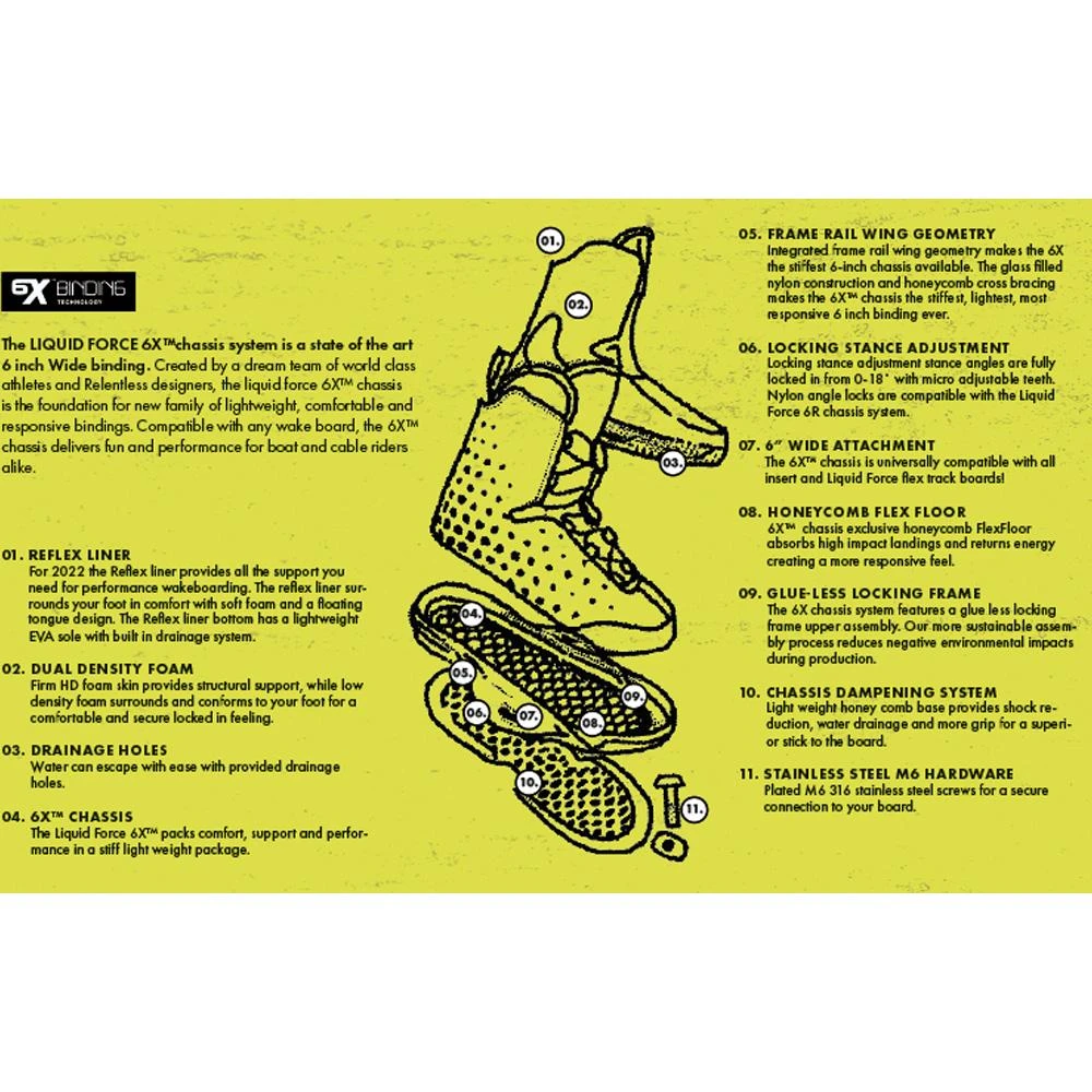 Son shape moyen à large et son flex moyen en font la chausse fermée a plus polyvlente et accessible de chez Liquid Force.