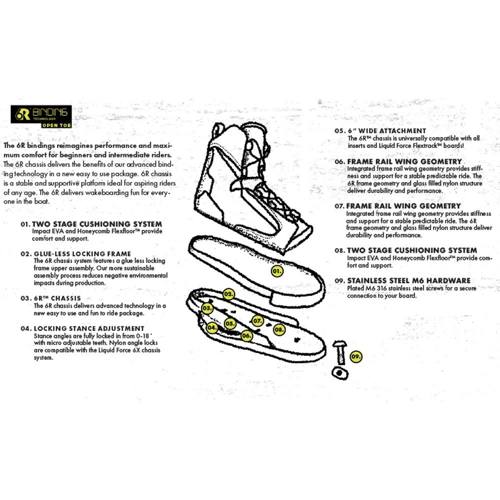 Dotée du nouveau chassis 6R, d’une doubure confortable et d’une base EVA elle offre un amorti confortale qui permettra de disposer d’une chausse polyvalente, facile et agréable à rider pour les novices comme les rideuses intermediaires.